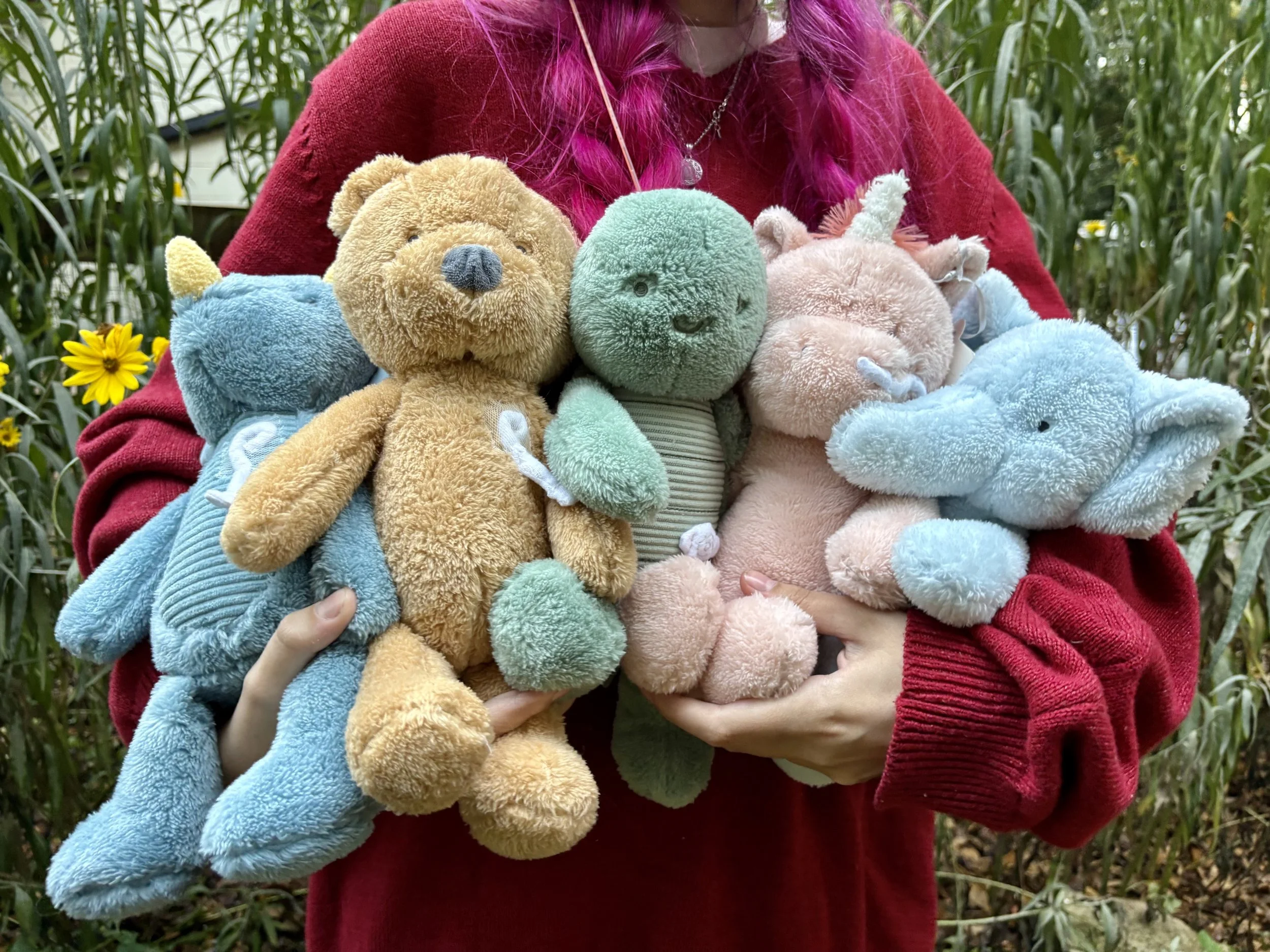 The Cuddlebug Foundation creates and donates custom plush animals designed to match the medical devices of their recipients. Each Cuddlebug is handmade with care—stitched with medical details like feeding tubes, insulin pumps, central lines, ostomy bags, and more—so every person can see themselves reflected in something soft and comforting.